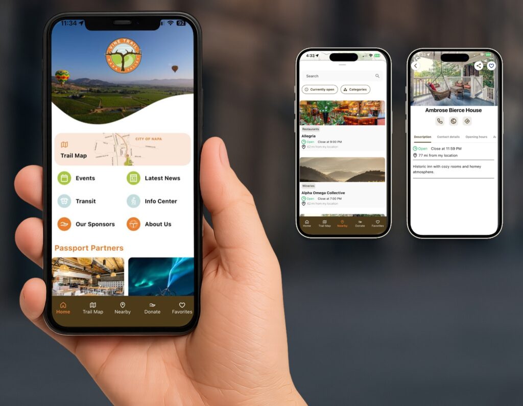 The Napa Valley Vine Trail mobile app is part of Lumiplan’s platform of mobile applications for the tourism sector. It offers guests and visitors of the Napa Valley Vine Trail convenient, on‑the‑go access to destination and resort information, such as trail map, events, activities and dining, directly on their mobile devices. The App content is kept up to date via Lumiplay’s software.